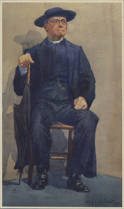 soutane, chaussant sur des yeux myopes et légèrement